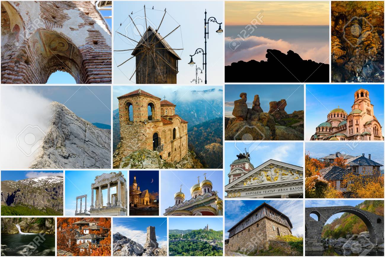 Collage Der Bulgarischen Sehenswurdigkeiten Und Beliebte Reiseziele Lizenzfreie Fotos Bilder Und Stock Fotografie Image 98327054