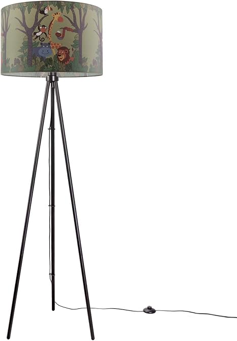 Paco Home Kinderlampe Stehlampe Led Kinderzimmer Dschungel Lampe Mit Tier Motiv Deko E27 Lampenfuss Dreibeinig Schwarz Lampenschirm Grun O45 5 Cm Amazon De Beleuchtung