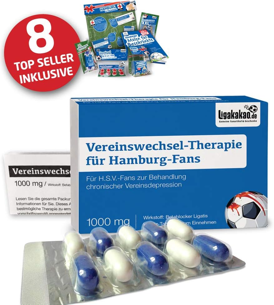 Fan Shop Vereinswechsel Therapie Fur Hamburg Fans Lakritz Schmerztabletten Fur Hsv Fans Mit Chronischen Vereinsdepressionen Wahle Gemein Witzige Geschenk Sets Uber Farbe Sport Freizeit Impas Es